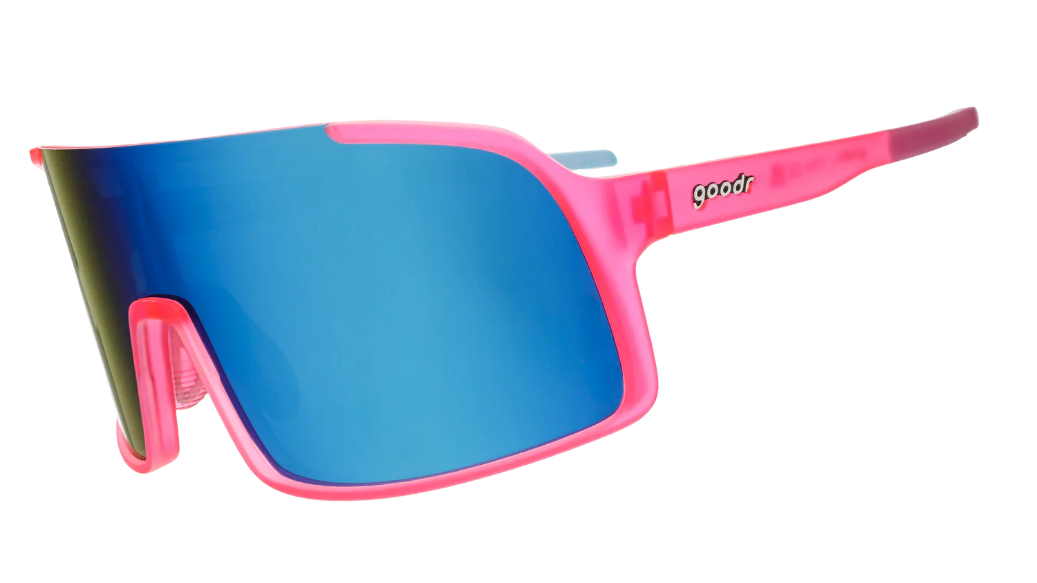 ALL occasions are worthy of a confetti cannon. Runner's toe finally healed? Bring on the cannon! Struck out at the big game? Cannon. These hot pink semi-rimless shield sunglasses w/ teal reflective lenses know how to bring the confetti cannon vibes.